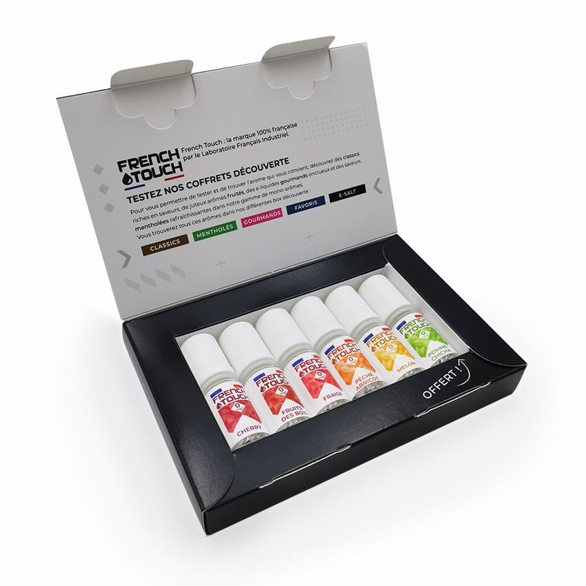 La marque française French Touch a été créée par le Laboratoire Français Industriel (LFI), implanté à Champigny-sur-Marne. Elle vous propose des e-liquides travaillés avec le plus grand soin pour satisfaire les goûts de tous. LFI est spécialisé dans la conception, la production et la distribution de fluides et composants de qualité pharmaceutique, cosmétique et alimentaire.